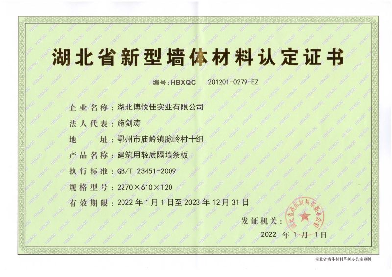 復(fù)合隔墻板證書        博悅佳輕質(zhì)墻板證書
